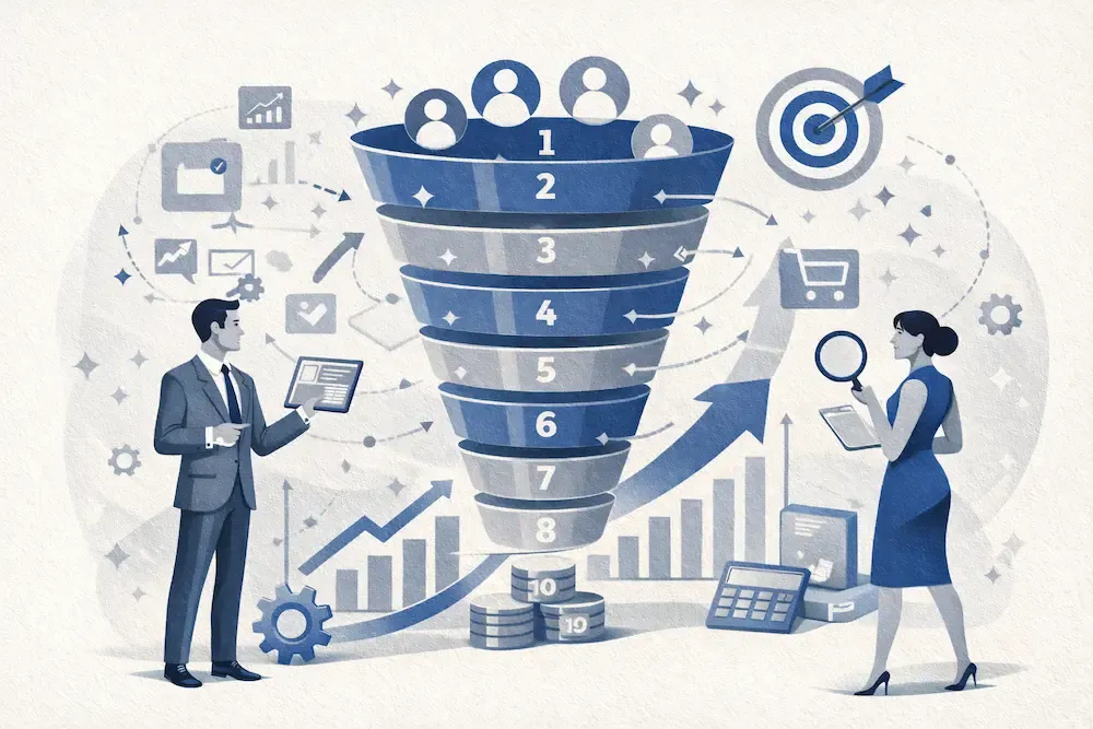 Только 4% лидов, попадающих в вашу воронку, станут клиентами. Это не пессимистичный прогноз — это средний показатель по рынку B2B в 2025-2026 году. При этом 73% потенциальных сделок теряются не из-за плохого продукта или высокой цены, а из-за отсутствия системы: менеджер забыл перезвонить, руководитель не увидел зависшую сделку, между маркетингом и продажами образовалась чёрная дыра. К концу статьи вы получите конкретную методологию, которая позволяет поднять конверсию на 35-50% — но главный вывод будет неожиданным: дело не в количестве этапов воронки, а в том, как вы определяете готовность сделки к переходу.
